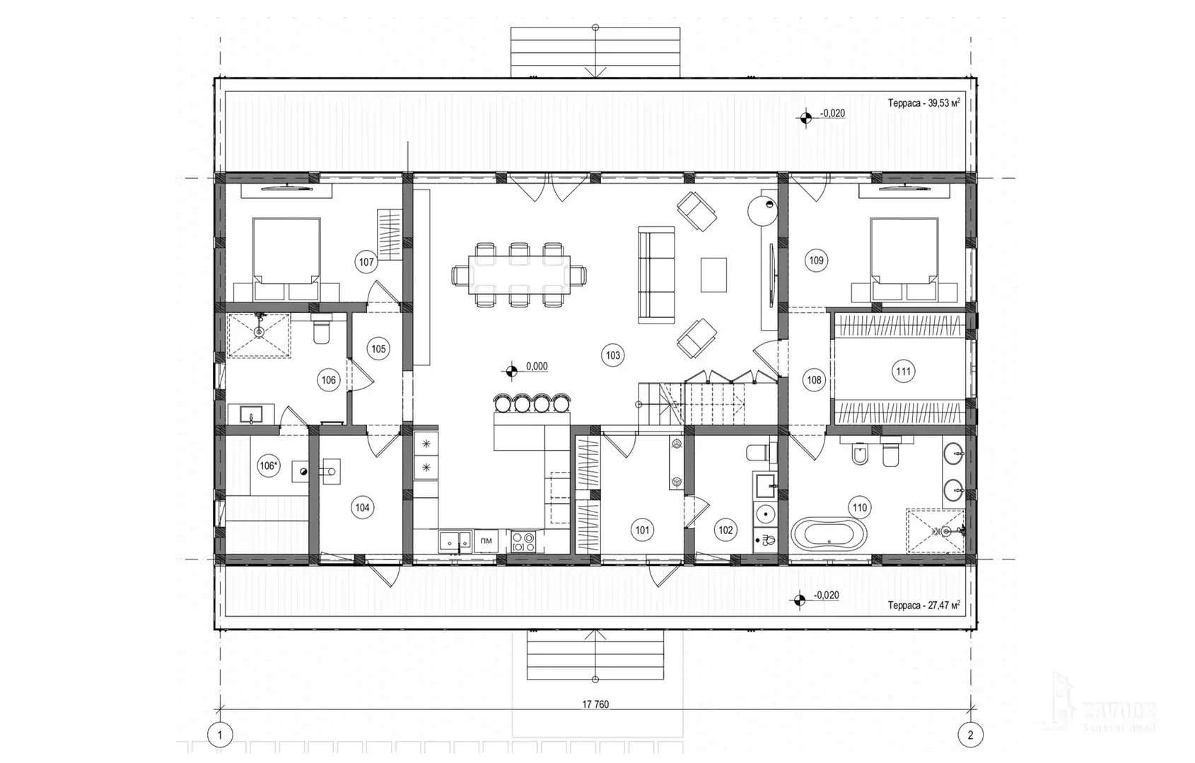 Дом по технологии фахверк со вторым светом, антресолью и террасой. 2 спальни, 2 санузла