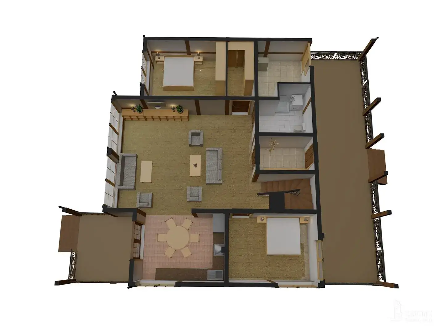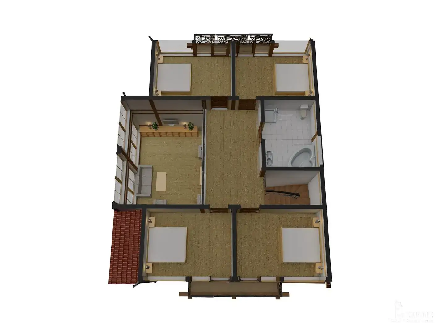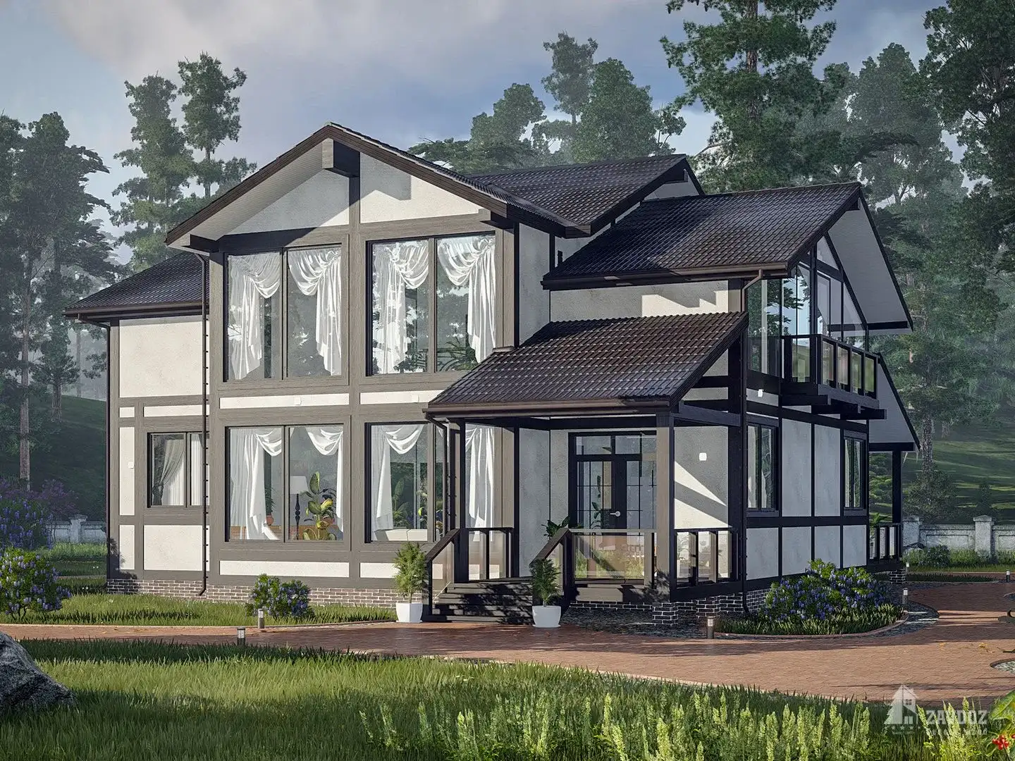 Двухэтажный фахверковый дом с 6 комнатами, 2 санузлами, вторым светом, мансардой и балконом