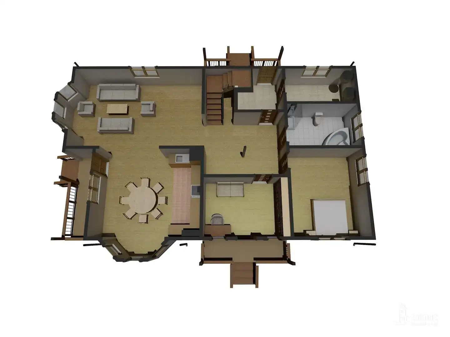 Двухэтажный дом в стиле шале с 5 комнатами, 3 санузлами, балконом, террасой и эркером
