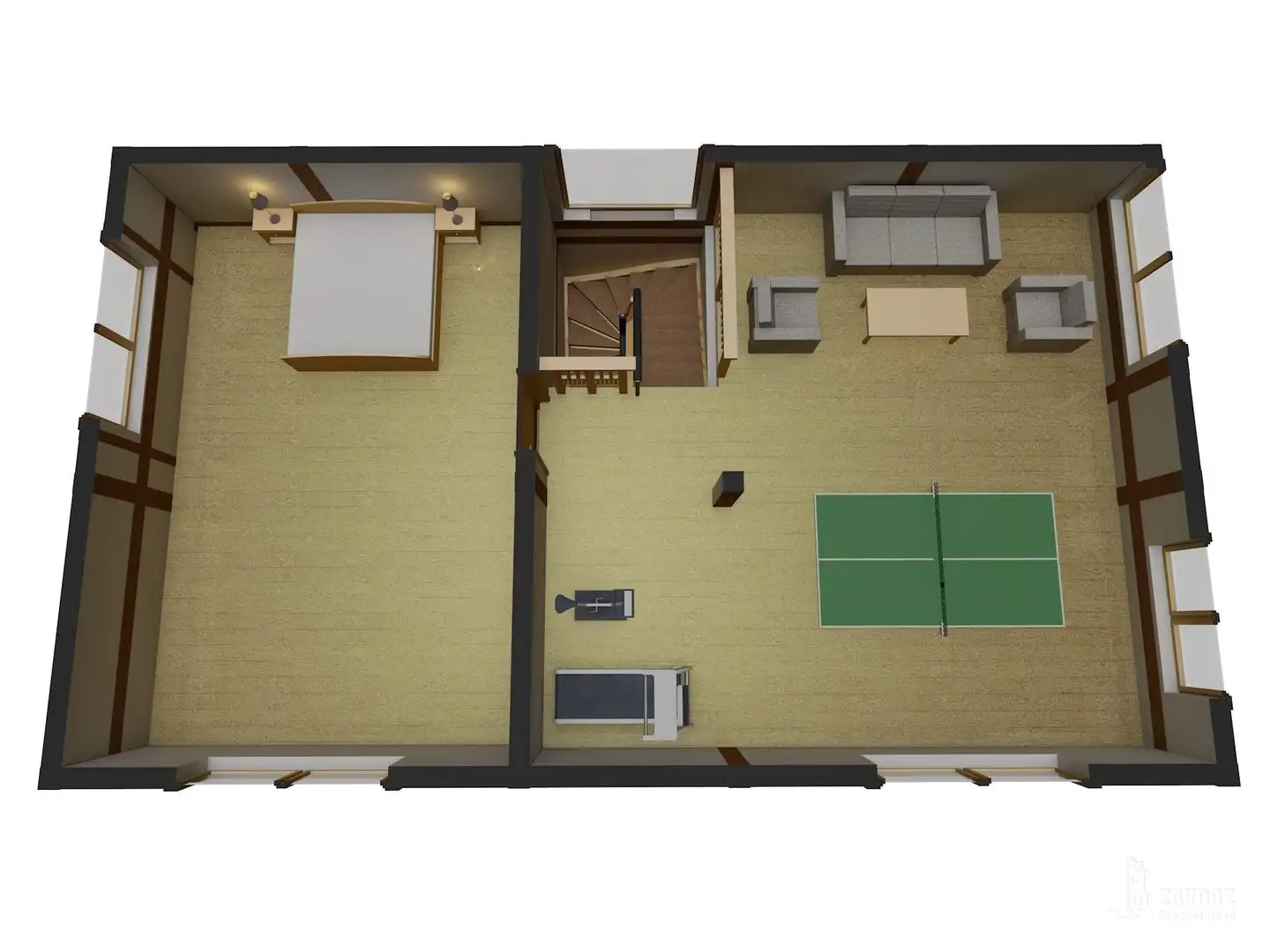 Трёхэтажный фахверк в стиле хай-тек с 5 комнатами, 2 санузлами, балконом, бильярдной и террасой