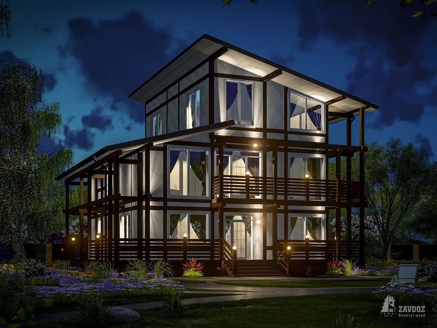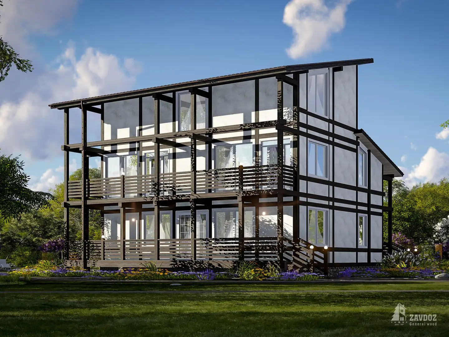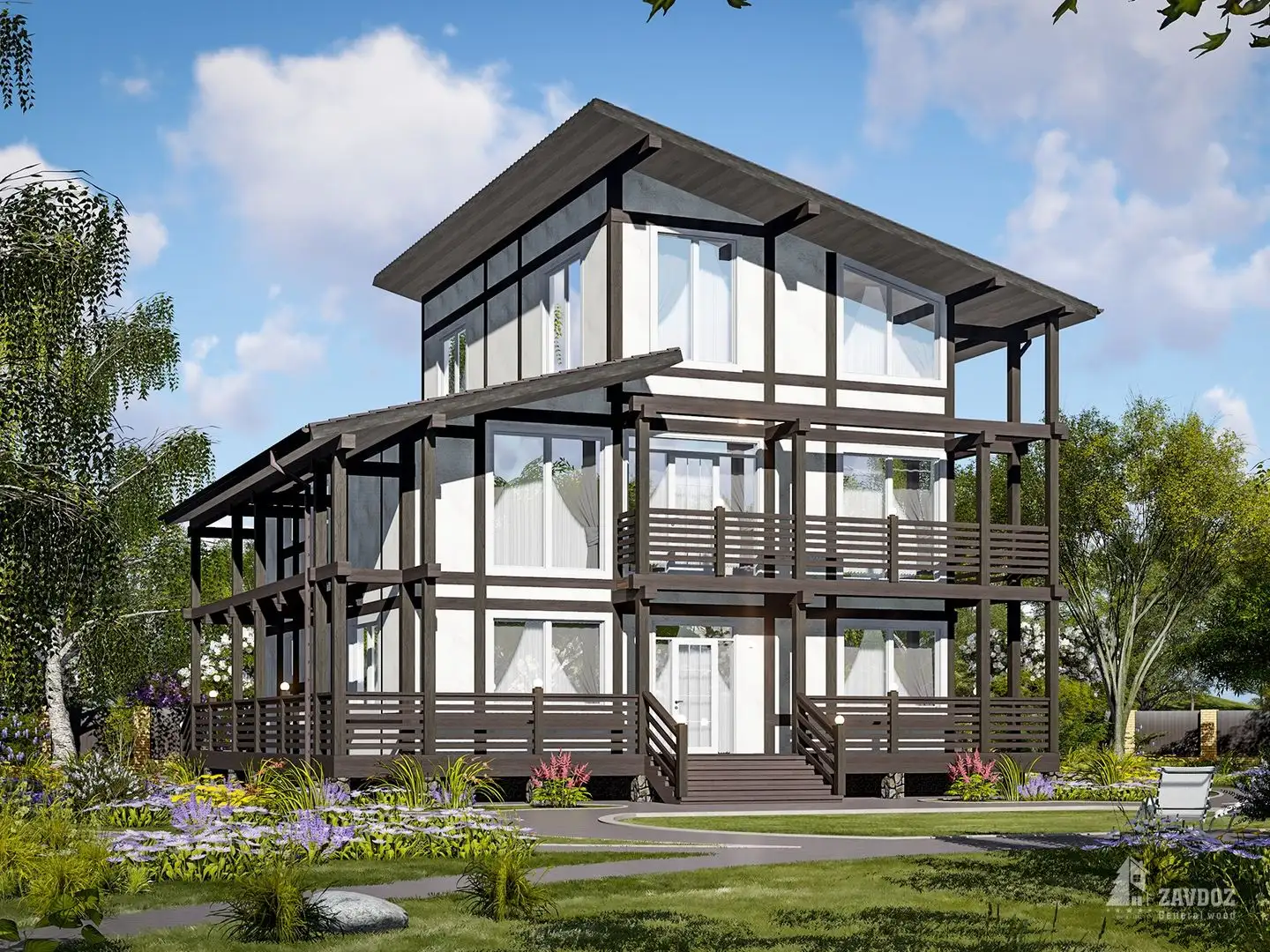 Группа ZAVDOZ предлагает строительство дома из клееного бруса под ключ или производство домокомплекта