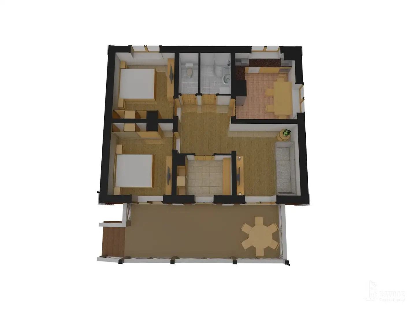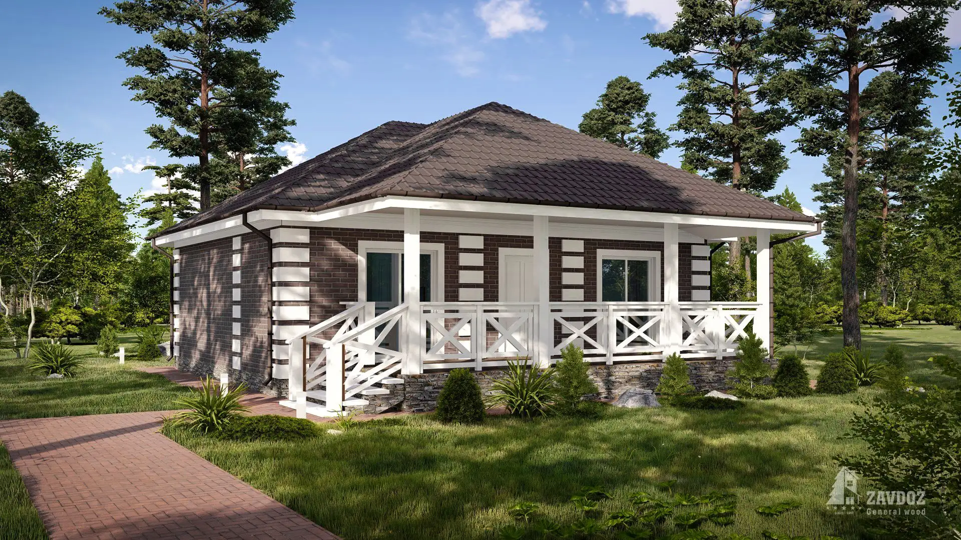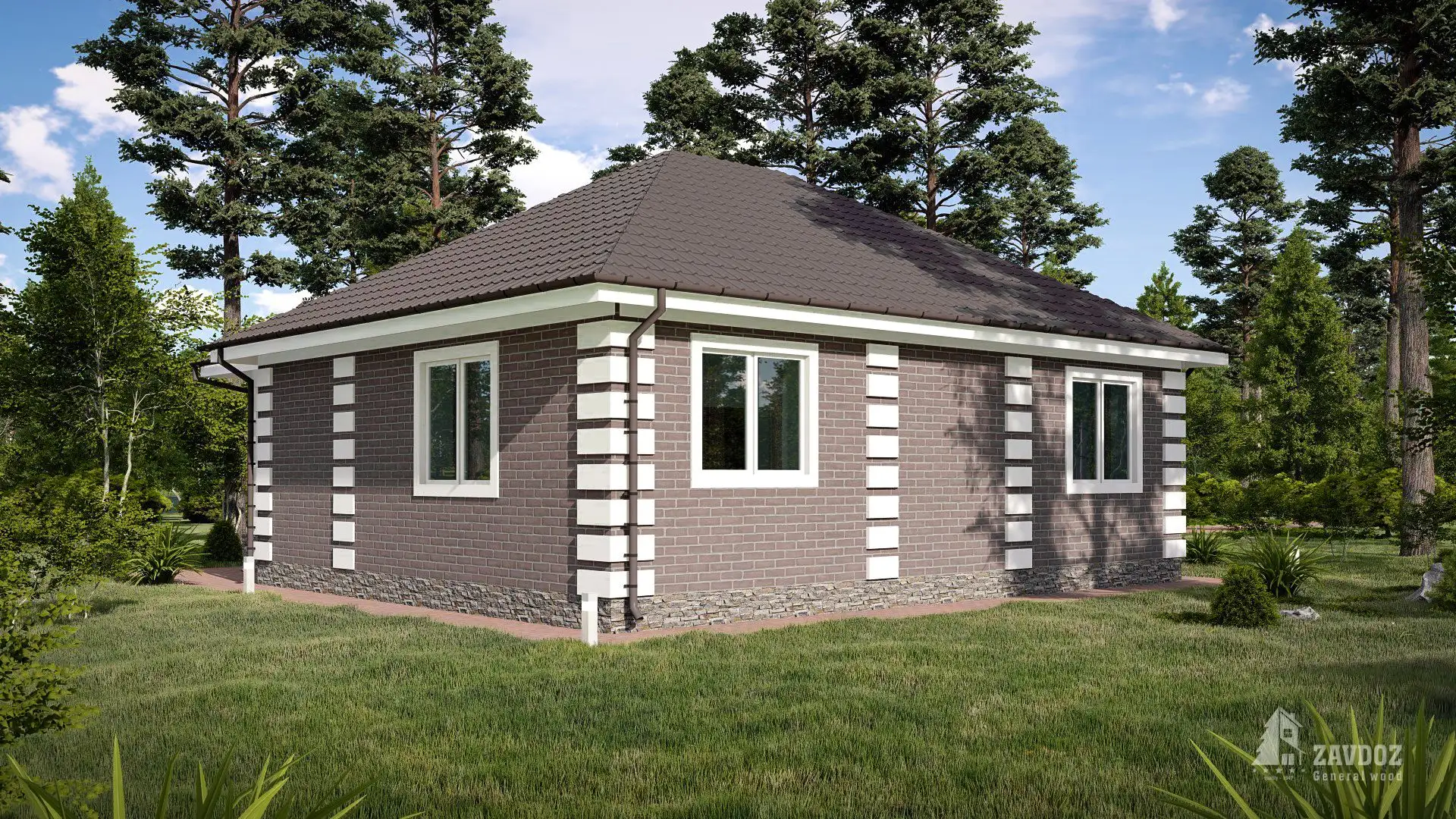 Одноэтажный дом из кирпича с просторной террасой, где можно собираться всей семьей, провожать закаты и неспешно проводить утро. Классическая планировка с двумя уединенными спальнями, отдельной кухней, гостиной и разделенным санузлом.