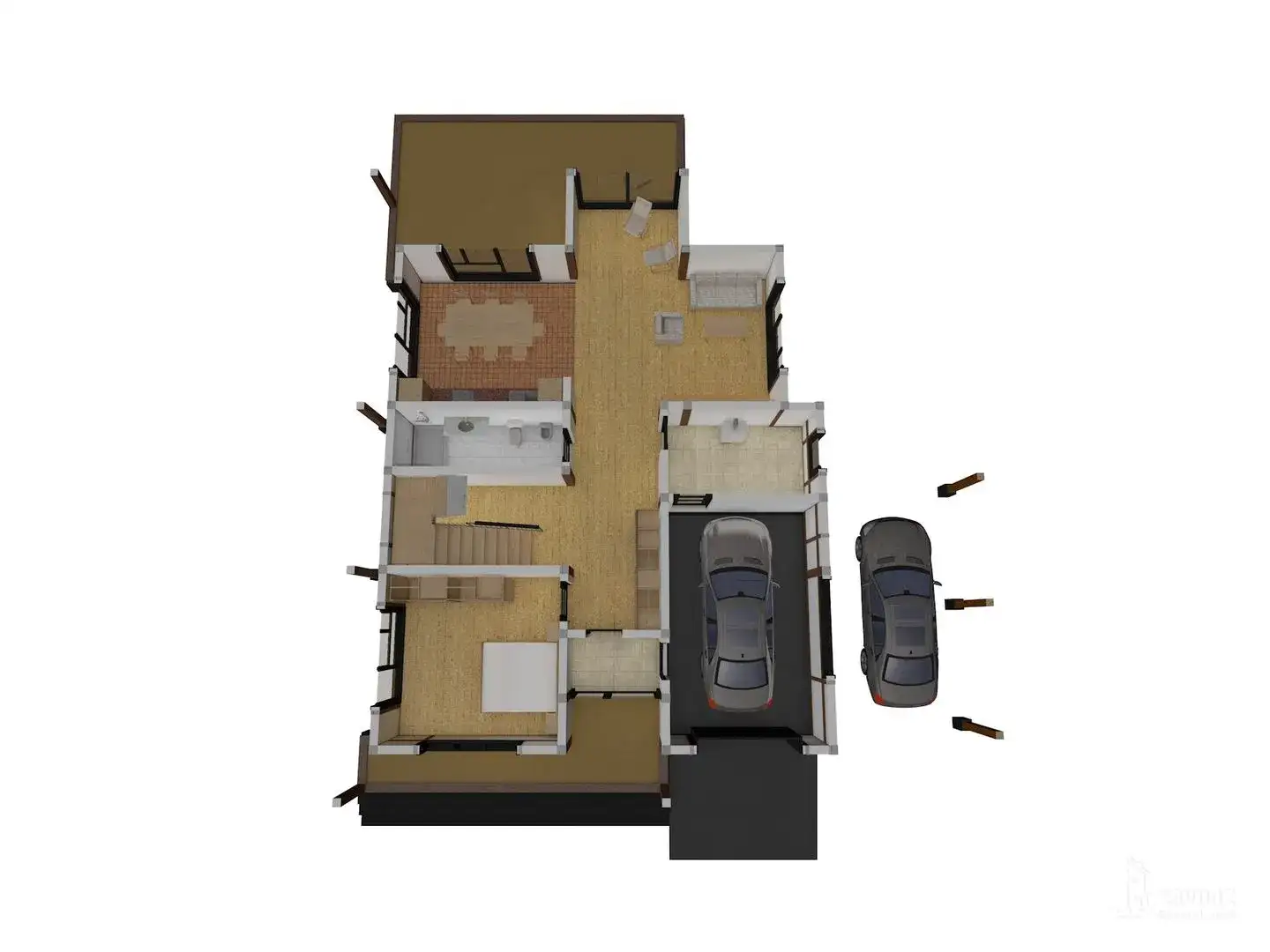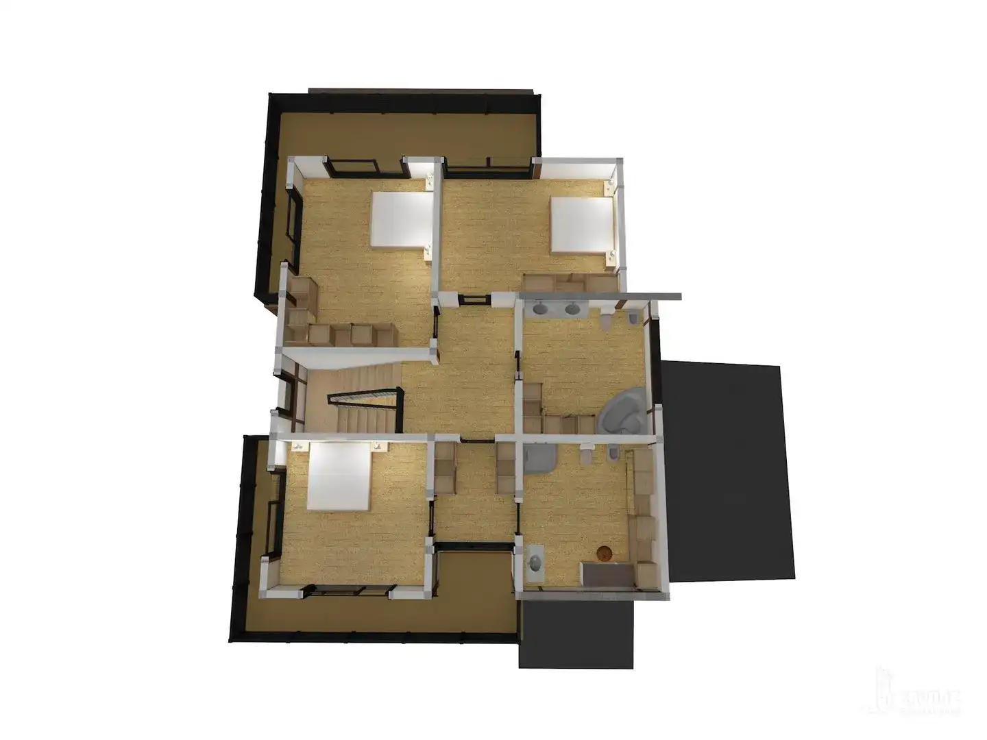 Двухэтажный дом - фахверк с 4 комнатами, 3 санузлами, балконом, навесом, террасой и мансардой