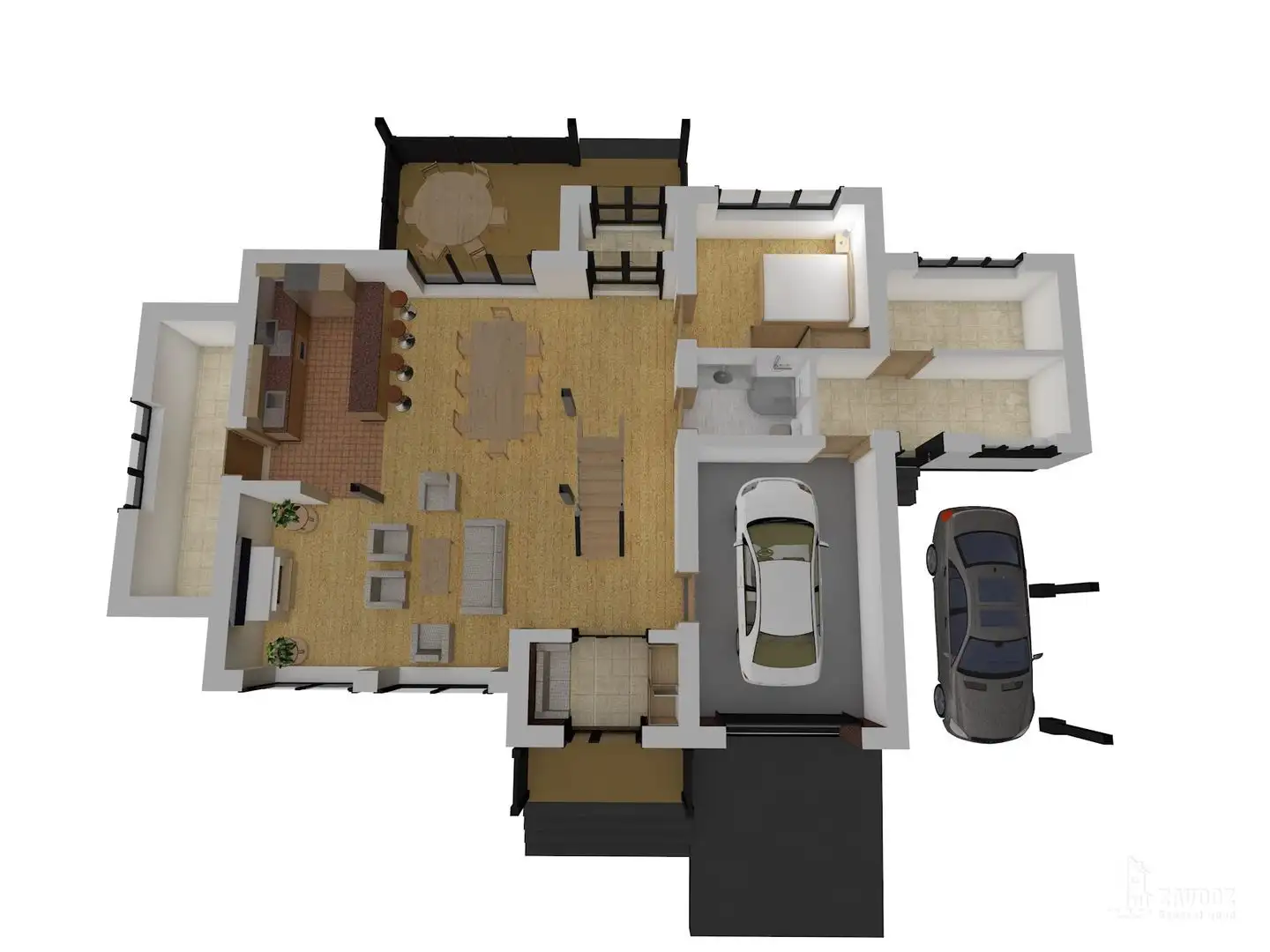 Современный дом из кирпича, идеально подходящий под спешные ритмы жизни. Возможность разместить сразу 2 автомобиля: под навесом и в гараже, просторная терраса, балкон и множество свободного пространства и воздуха благодаря второму свету.