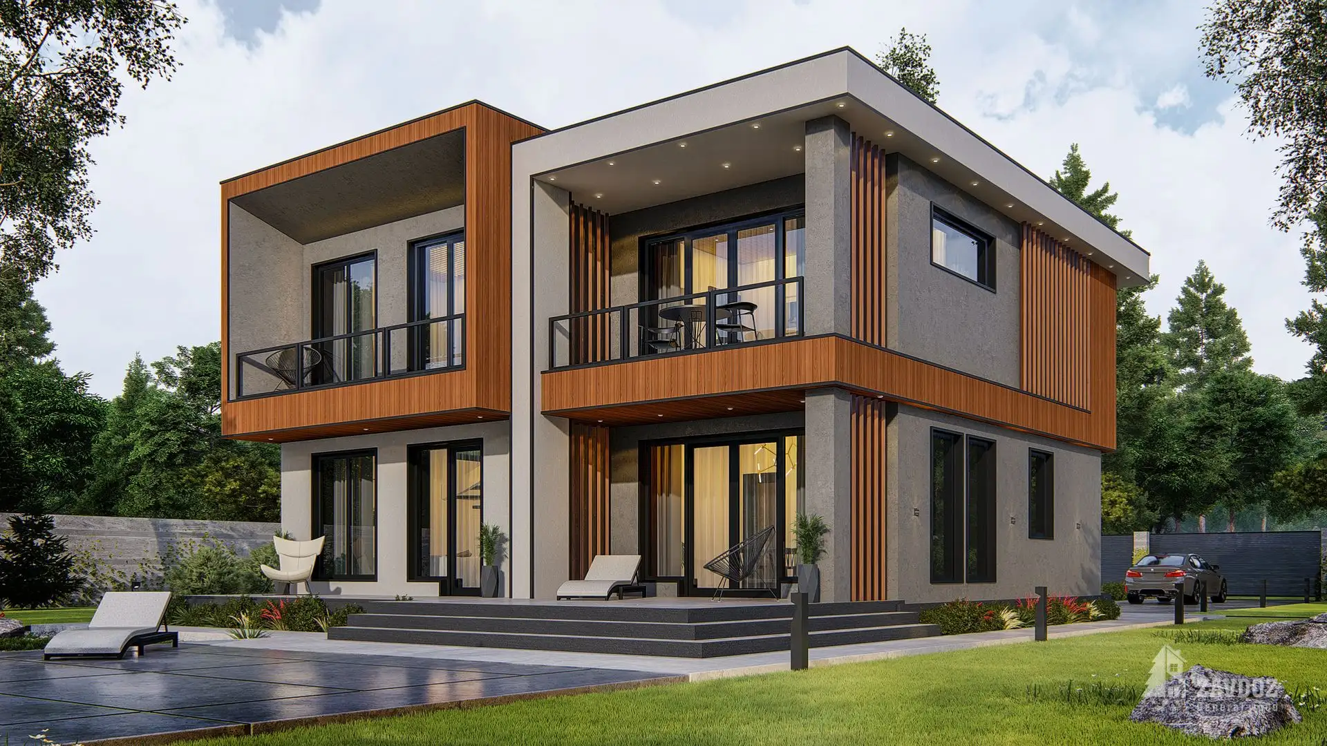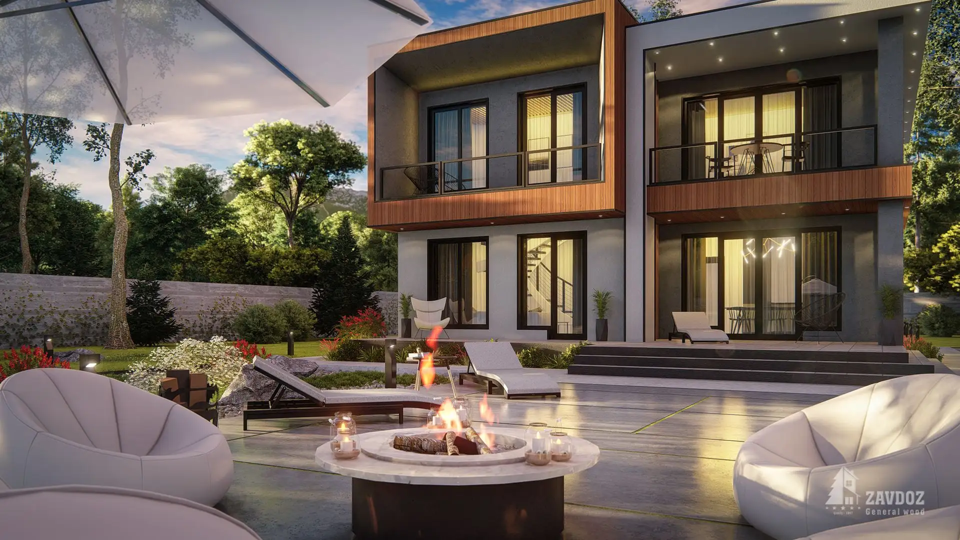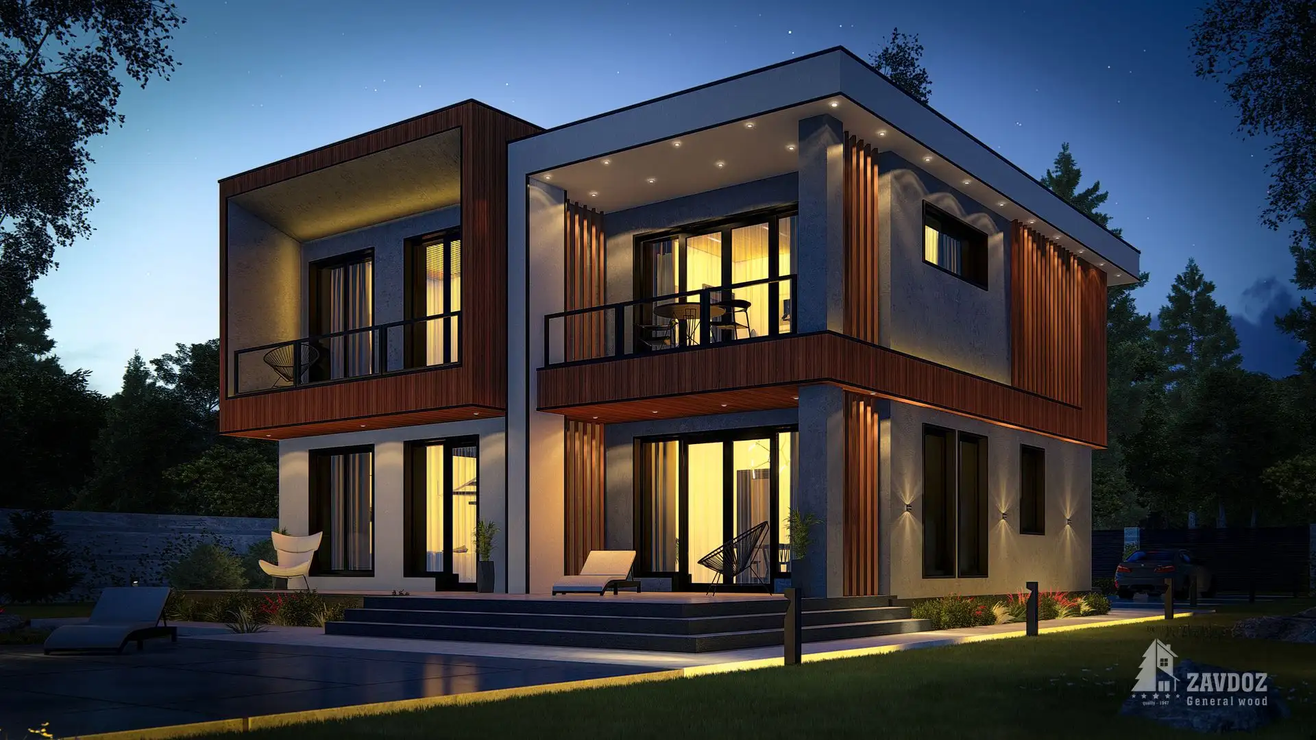 Кирпичный дом в стиле хай-тек с двумя жилыми этажами. Просторные балконы, терраса, удобная планировка, позволяющая не только проводить время с семьей в общих пространствах, но и побыть в уединении.