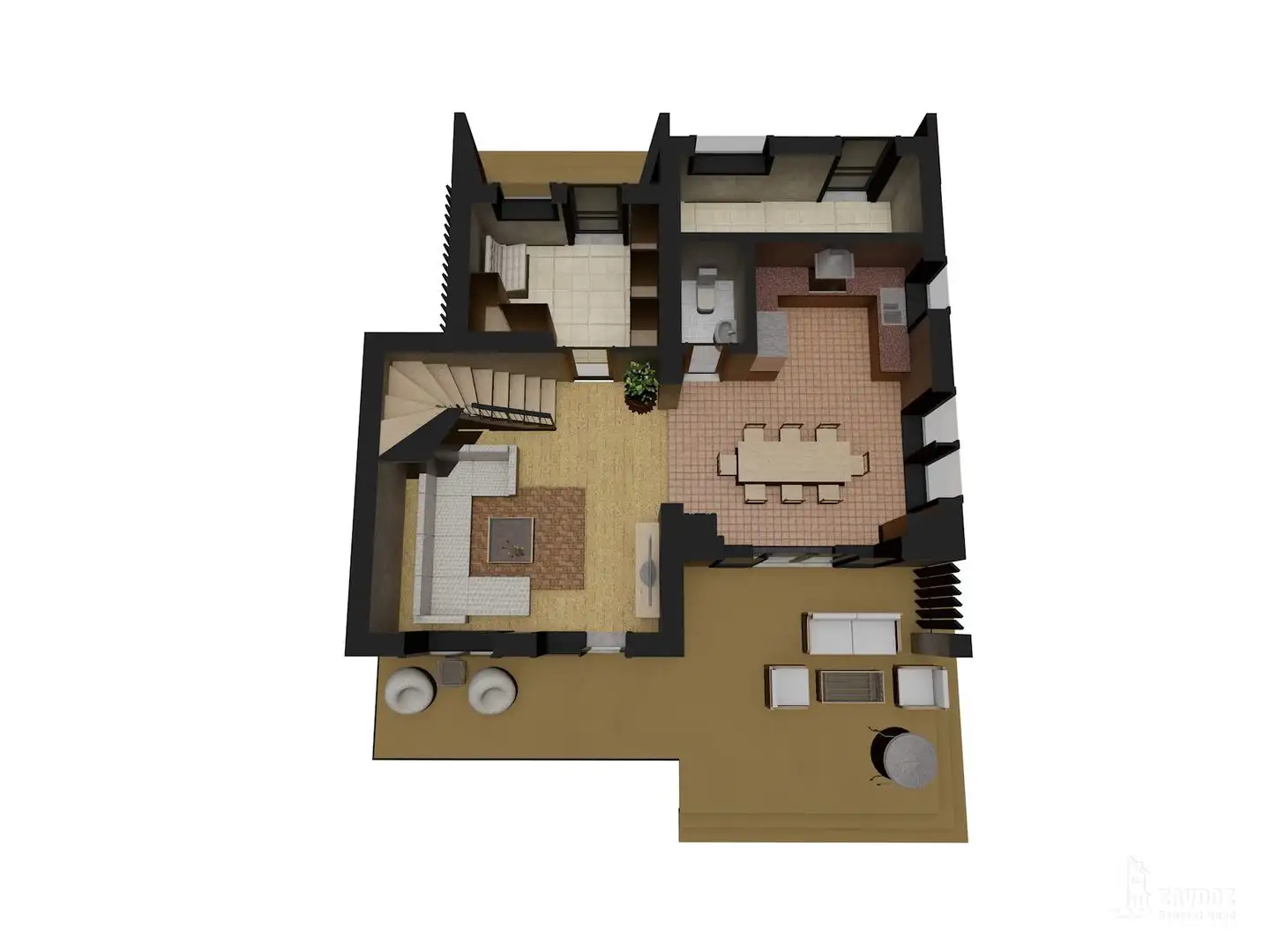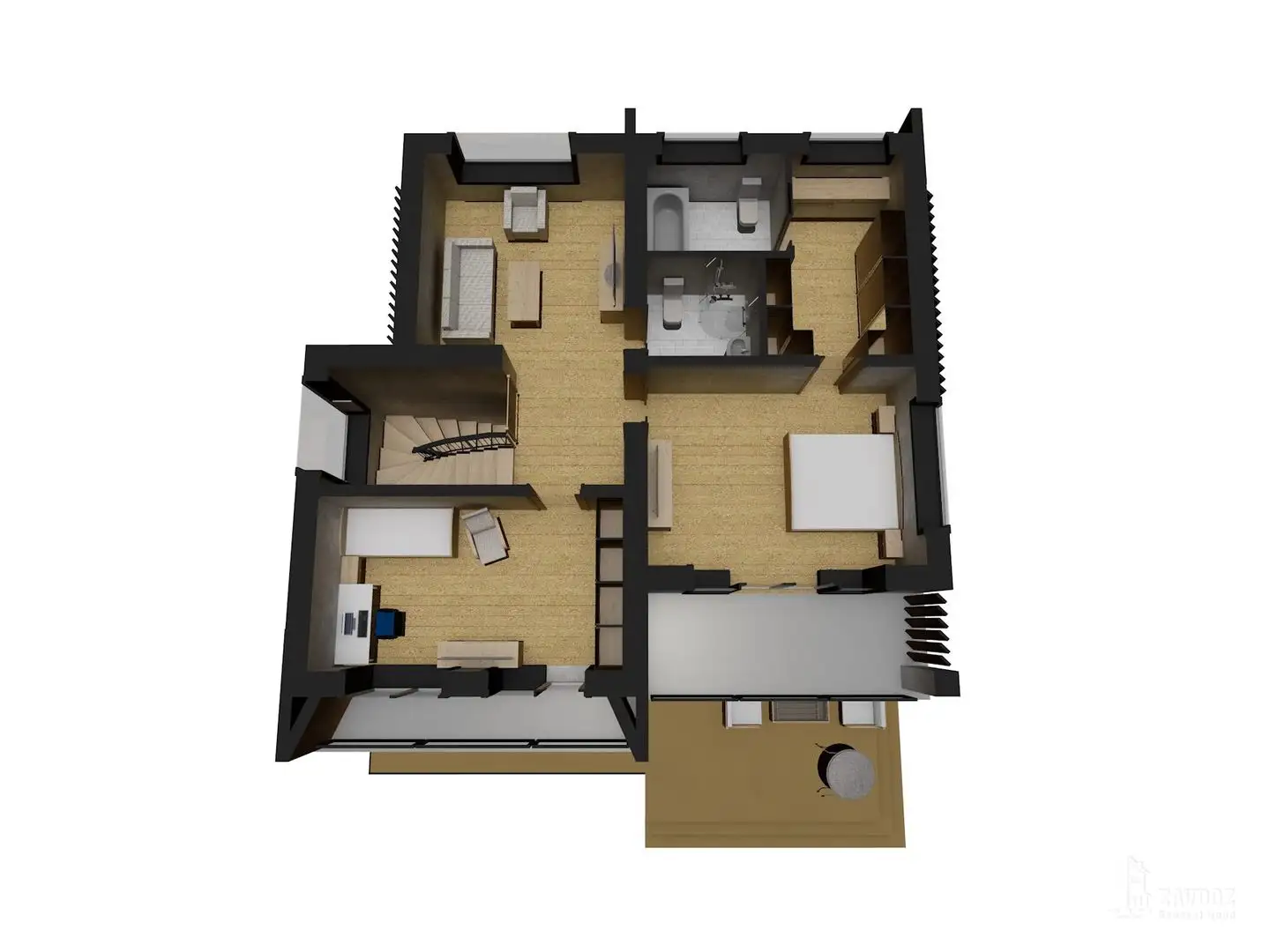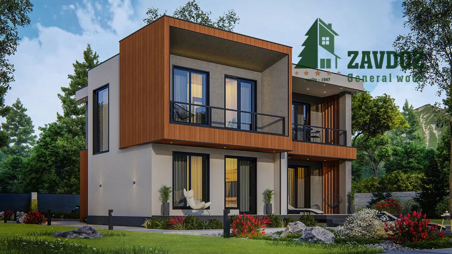 Кирпичный дом в стиле хай-тек с двумя жилыми этажами. Просторные балконы, терраса, удобная планировка, позволяющая не только проводить время с семьей в общих пространствах, но и побыть в уединении.