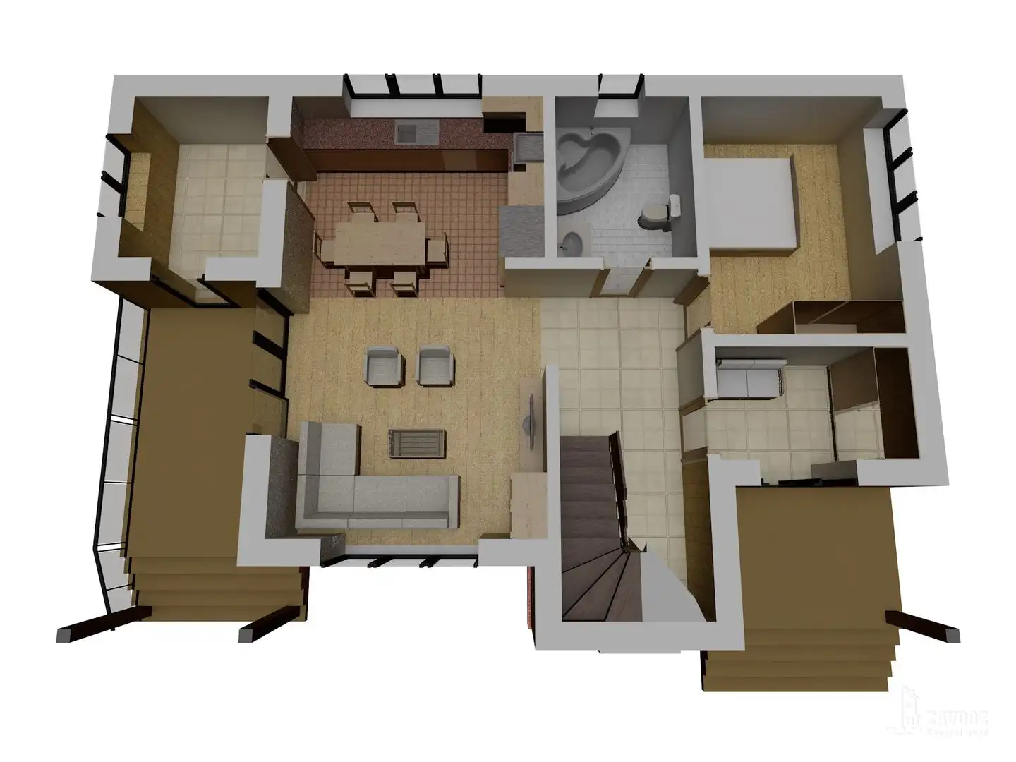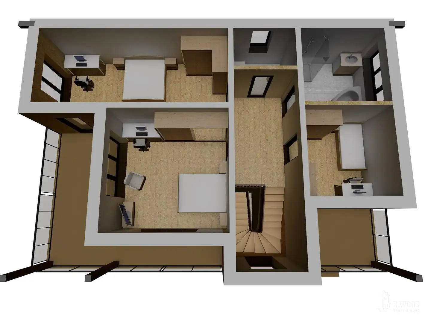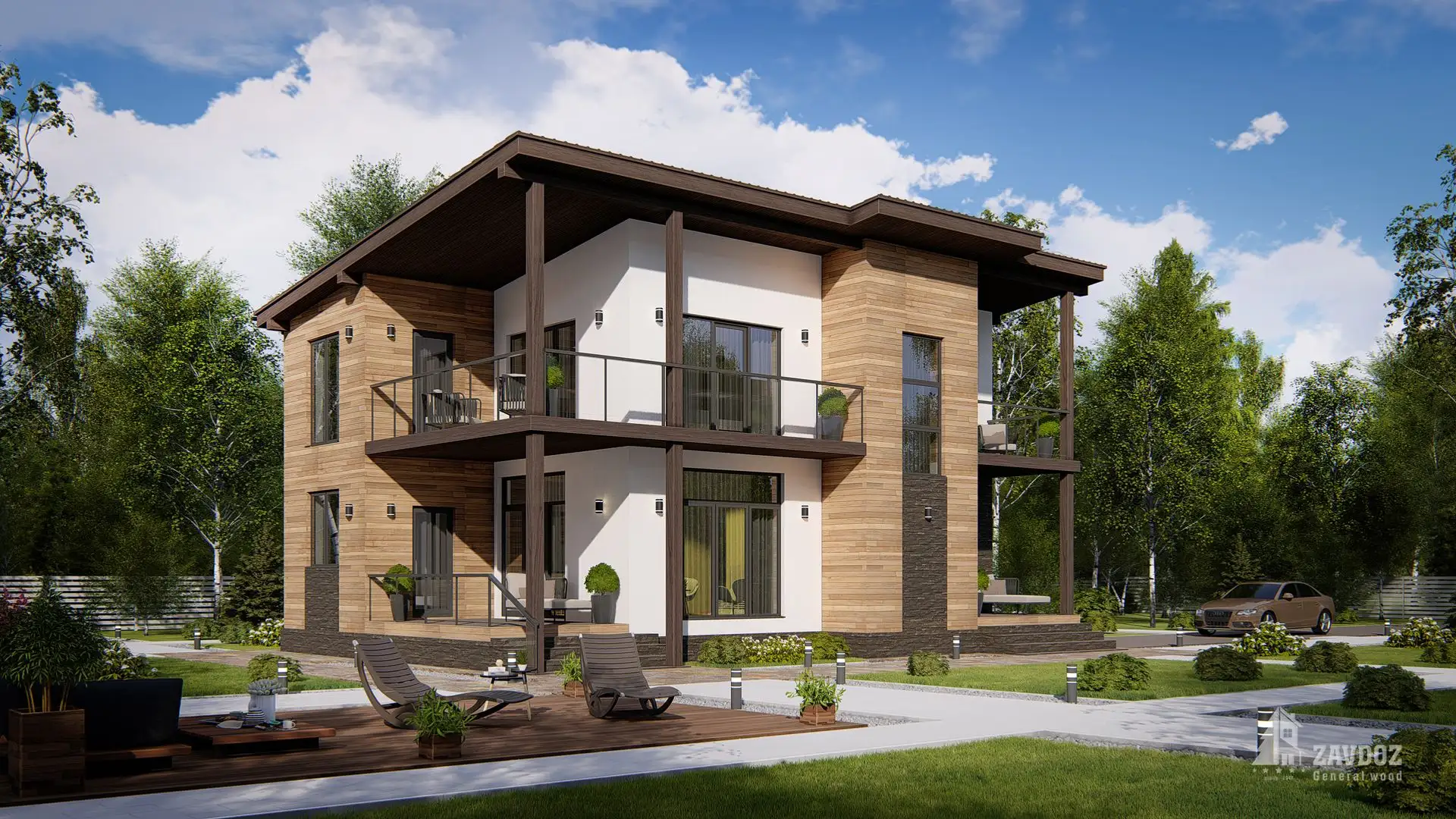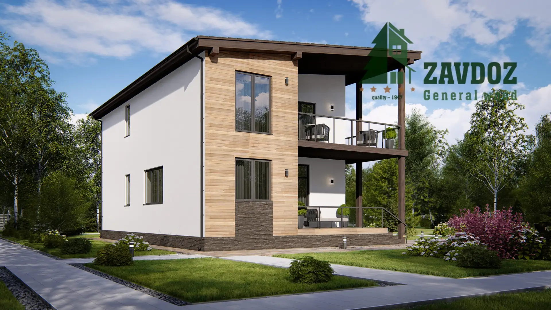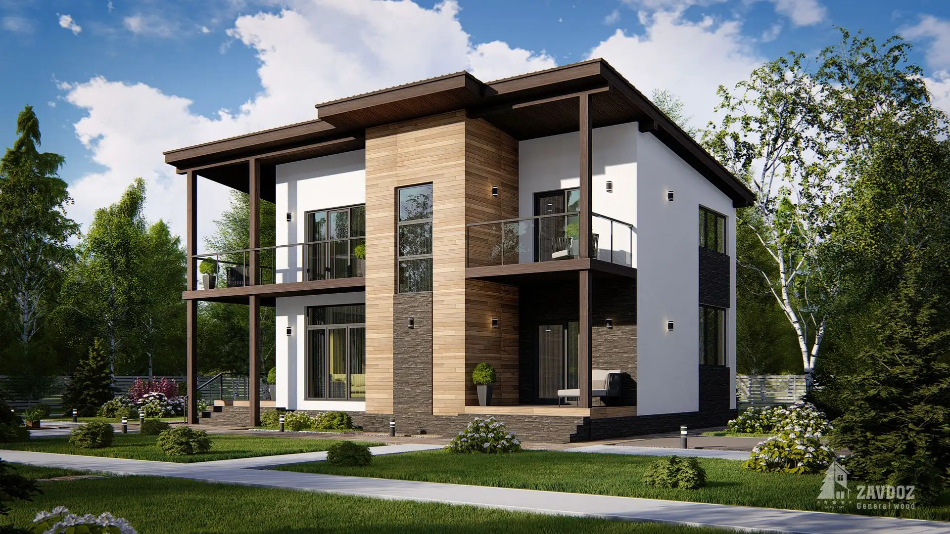 Дом из кирпича в стиле хай-тек с плоской крышей. Симметричность линий, квадратные формы и ультрасовременная архитектура. Планировка сочетает в себе баланс пространства и воздуха. Просторная кухня-гостиная, терраса, балкон для утренней чашечки кофе. Максимум полезного пространства для жизни и отдыха.